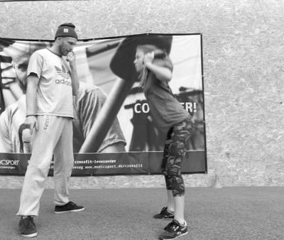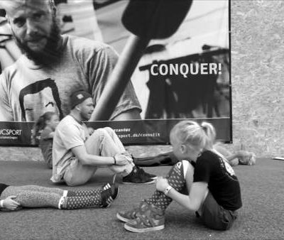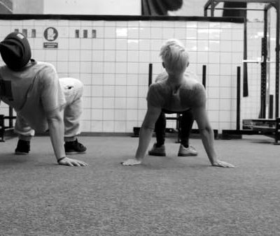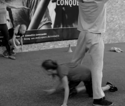 1min løb sammen med en makker - Hold fast i hinanden eller vær bundet sammen. Rør så mange vægge i salen som muligt.